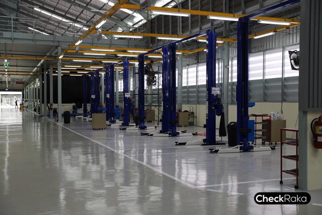 โซนที่สองพื้นที่ส่วนงานด้านบริการหลังการขายกว้างขวาง สะดวก สะอาด มาตรฐานด้วยช่องซ่อมมากกว่า 15 ช่องซ่อมลิฟท์ยกรถ 7 ตัว รับรถได้ 40 - 50 คันต่อวันสบายๆ