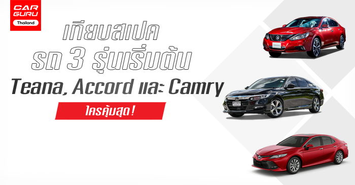 เปรียบเทียบสเปครถเก๋ง 3 รุ่นเริ่มต้น Nissan Teana, Honda Accord และ Toyota Camry ใครคุ้มสุด!