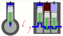 วัฐจักรของเครื่องยนต์แบบ 3 ลูกสูบนั้นก็มีกระบวนการเหมือนกับเครื่องยนต์ทั่วไปนั่นคือ มี 4 จังหวะ ดูด-อัด-ระเบิด-คาย และควบคุมด้วยวาล์วบนฝาสูบ และใช้หัวเทียนในการจุดระเบิด เครื่องยนต์ 3 สูบมีใช้กันมานานหลายปีแล้ว แต่ในปัจจุบันที่เทคโนโลยีทันสมัยมากขึ้นทำให้ชิ้นส่วนต่าง ๆ ของเครื่องยนต์ทนทาน รองรับพละกำลังได้มาก และยังมีน้ำหนักที่เบา การขยับตัวของชิ้นส่วนที่มีการเคลื่อนที่น้อยลง ทำให้ลดการสูญเสียกำลังได้มากขึ้น เรียกว่า ตัวและคล่องตัวในการหมุนมากขึ้น อย่างเช่นเครื่องยนต์ของ Nissan เบนซิน 3 สูบ turbocharged ขนาด 1.5 ลิตร กำลังสูงสุด 400 แรงม้า แรงบิด 380 นิวตัน-เมตร ที่อยู่ใน ZEOD RC