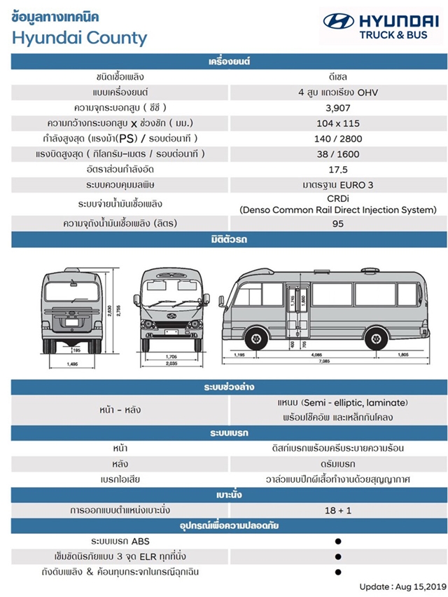 Hyundai County รถโดยสารไฮเทคประตูไฟฟ้า ประกอบไทยพวงมาลัยขับขวาครั้งแรกของโลก!
