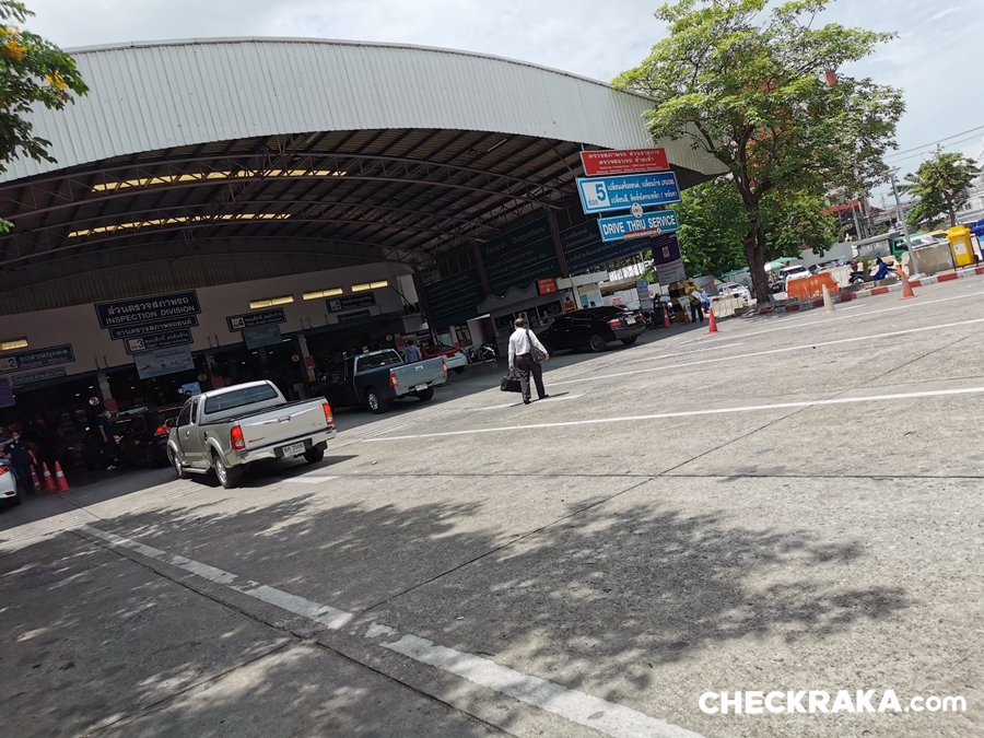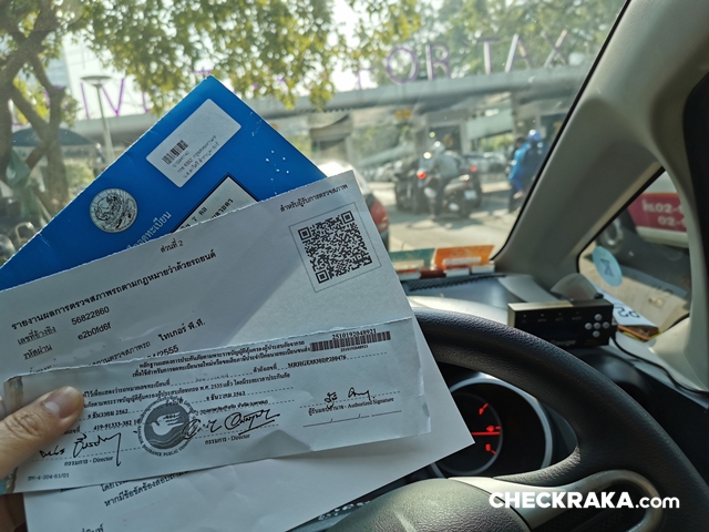ขั้นตอนในการนำรถยนต์เข้ารับการตรวจสภาพ ต้องนำรถมาตรวจที่กรมการขนส่งทางบกที่ได้จดทะเบียนเอาไว้เท่านั้น ไม่สามารถตรวจที่สถานเอกชนได้ ขั้นตอนนั้นก็เพียงขับรถเข้าช่องตรวจ เมื่อถึงจุดตรวจเปิดฝากระโปรงหน้ารถ รอเจ้าหน้าที่ทำการตรวจสอบ เลขตัวถัง เลขเครื่องยนต์ สภาพทั่วไป เมื่อผ่านก็รอรับเอกสารพร้อมขับรถไปจอดได้เลย (ในช่วงการแพร่ระบาดโควิด-19 ไม่ต้องลงจากรถเพื่อไปติดต่อบนตึก)