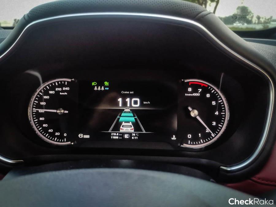 ระบบ Cruise Control ระบบที่ช่วยลดความเมื่อยขณะขับรถ (อยู่ใต้ก้านไฟเลี้ยวของ HS อยู่ฝั่งซ้าย) ด้านใต้เป็นการ Setting ระบบต่างๆ หากทำการ Set แล้วจะขึ้นที่หน้าจอ 7 นิ้ว TFT Cruise Control ของ HS สามารถเซ็ทได้จากความเร็วต่ำเพียง 30 กิโลเมตรต่อชั่วโมง ระบบ Cruise Control ช่วยได้โคตรเยอะในการเดินทางไกล เพราะไม่ต้องเหยียบคันเร่งเอง ตั้งความเร็วได้ ไม่ต้องมีรถข้างหน้าก็ Set ทิ้งไว้ให้รถขับให้ เราคุมพวงมาลัยอย่างเดียว แถมยังฉลาดอีก เพราะสามารถตั้ง Set ไว้ให้รถเราห่างจากคันหน้า ได้ 3 ระยะ หากใกล้เกินไป รถจะชะลอและเบรคให้เราไม่ไปชิดเขา (เพื่อความปลอดภัย) หรือใครปาดเข้า (ซึ่งน้อยที่จะได้เข้า รถมันติดเท้าดี) มันก็ยังฉลาด ชะลอเบรคให้เราอีก พอคันหน้าห่างไปพอตัวตามที่เซทไว้ รถก็เร่งความเร็วกลับมาเท่าเดิม ....เป็นการขับรถกที่สนุก ไม่เมื่อย ได้ทดลองระบบหลากหลาย เลยทีเดียว