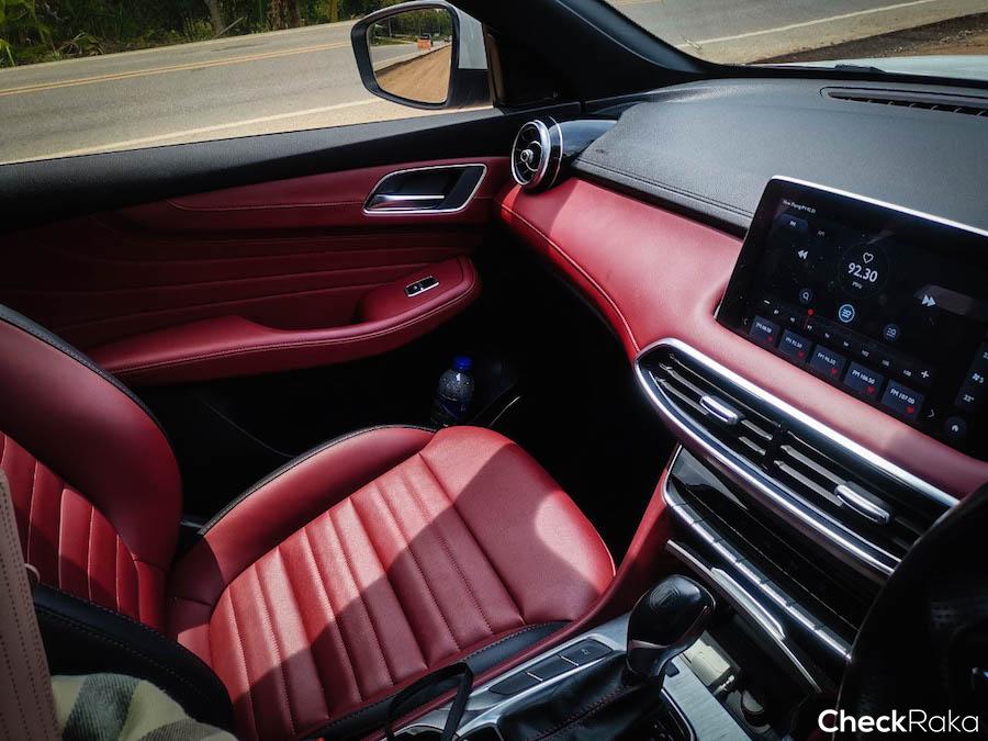 แน่นอนว่าพอใครเปิดประตูเข้าดูภายในแล้วจะต้องพบกับความหรูหราที่ราคา ล้านหนึ่งแสน คันนี้ให้มาเพราะทั้งเบาะหนังคู่หน้าแบบ SPORT BUCKET SEAT สีทูโทนและคอนโซนที่ออกแบบให้เป็นสีแดงโทนไม่จัดมากทำให้ตัดกับโทนดำภายใน มันดูหล่อแบบผู้ดีเสียจริง เข้าไปนั่งที่คนขับกับเบาะปรับไฟฟ้า ทั้ง 2 ข้าง (คนขับ และผู้โดยสาร) ยิ่งได้อารมรณ์อยากจะซิ่ง