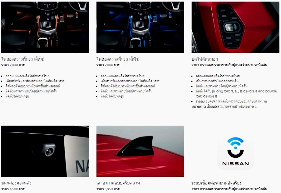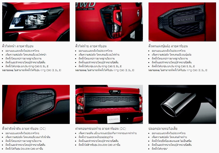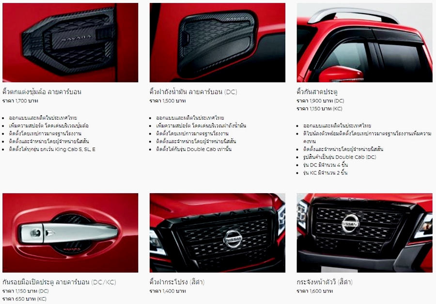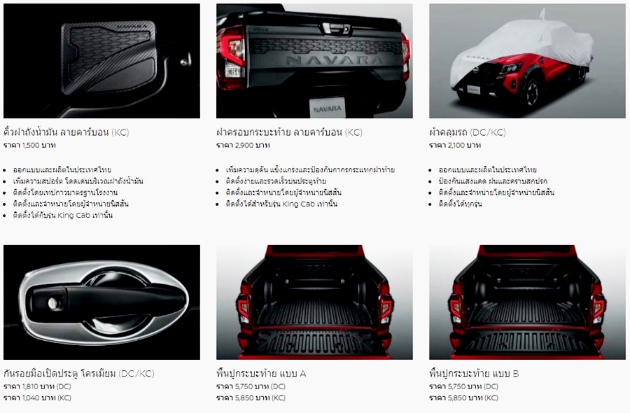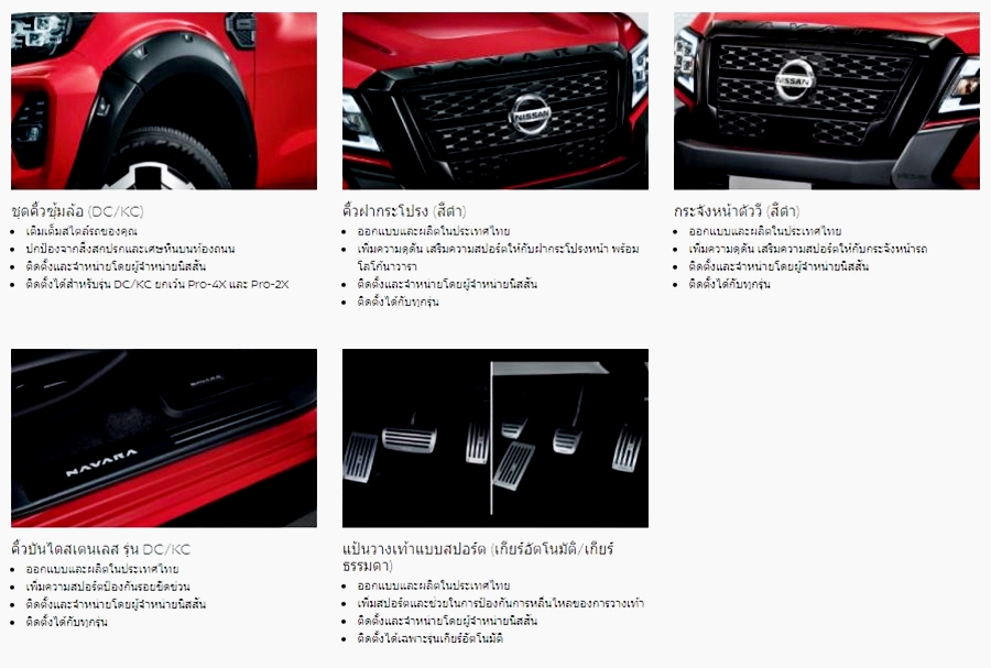 อุปกรณ์ตกแต่งแท้ นิสสัน นาวารา หรือสอบถามข้อมูลต่าง ๆ เพิ่มเติมได้ที่ 0-2401-9600 หรือส่งอีเมลมาที่ info@nissan.co.th หรือโชว์รูมนิสสัน ทั่วประเทศ หรือ