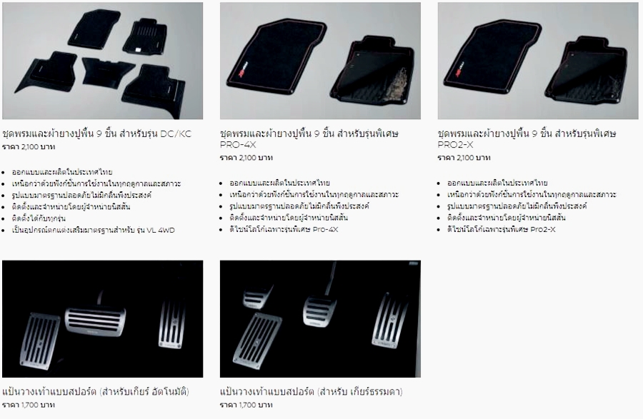 - ชุดพรมและผ้ายางปูพื้น 9 ชิ้น สำหรับรุ่นพิเศษ PRO-4X ราคา 2,100 บาท
