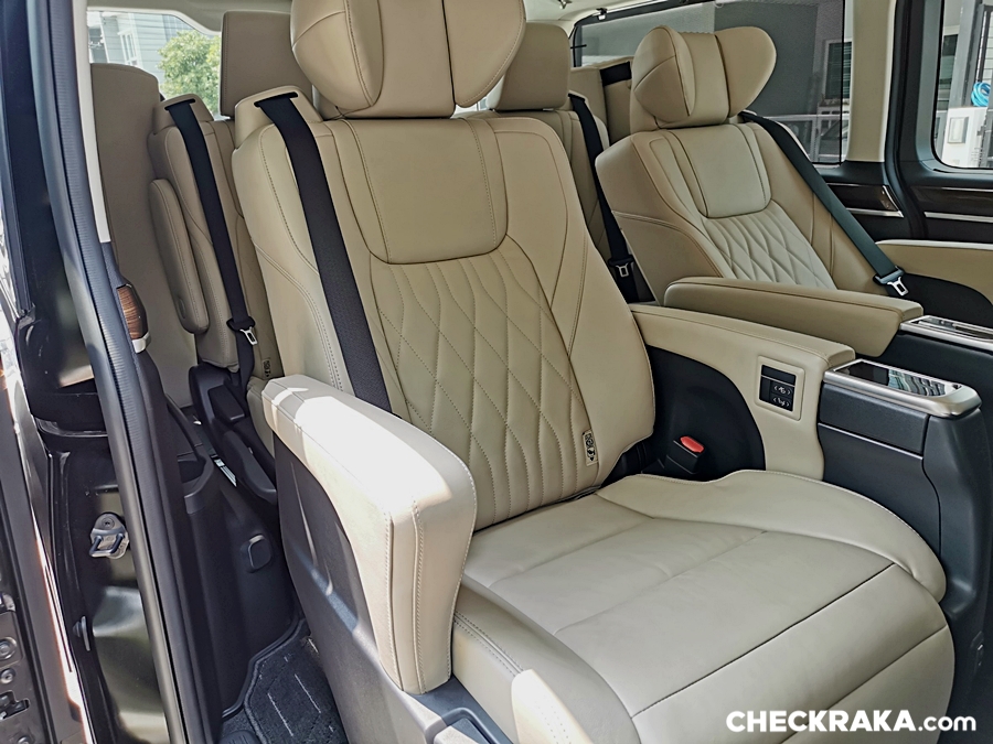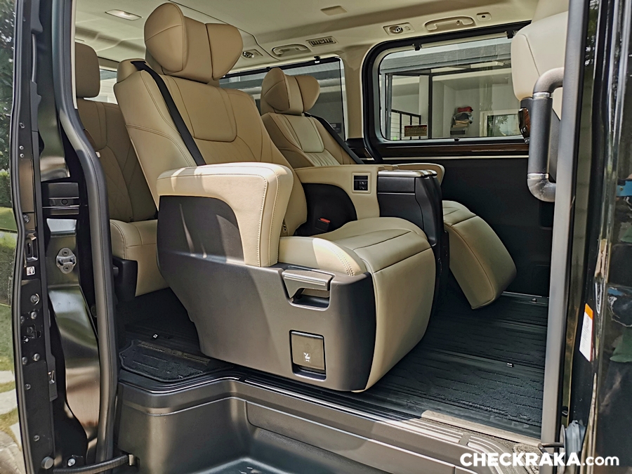 โตโยต้า อัลฟาด ขาดแค่รูปทรงภายนอกที่ดูยังไงก็ยังเป็นรถตู้ธรรมดา สำหรับภายในนั้นโปร่งหลังคาสูงและการเดินภายในรถสะดวกสบาย จุดเด่นเจ้าเดียวใน 3 รุ่นนี้อีกอย่างคือ เบาะผู้โดยสารตอนหลังแถวแรกแบบ Captain Seat นั่งสบายราวกับนั่งเครื่องบินระดับ First class!
