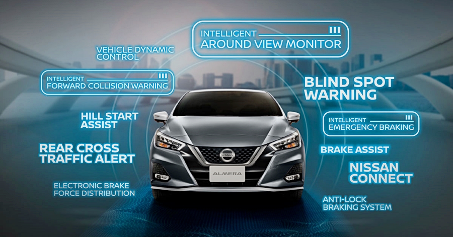 Nissan Almera ถูกติดตั้งมาให้มากมาย ไม่ว่าจะเป็น ระบบเตือนรถในมุมอับสายตา Blind Spot Warning System, ระบบตรวจจับวัตถุด้านหลัง เมื่อรถกำลังถอย Rear Cross Traffic Alert และ ระบบเตือนก่อนชนด้านหน้า Intelligent Collision Warning - ระบบเบรกฉุกเฉิน Intelligent Emergency Braking ที่มีในรถหรู ราคาแพง ช่วยลดการเกิดอุบัติเหตุได้ นอกจากนี้ยังมีระบบถุงลมนิรภัย 6 ตำแหน่ง ช่วยปกป้องจากอุบัติเหตุรุนแรง ทุกคนในห้องโดยสารปลอดภัย มีมาให้ครบ คุ้มค่า คุ้มราคา