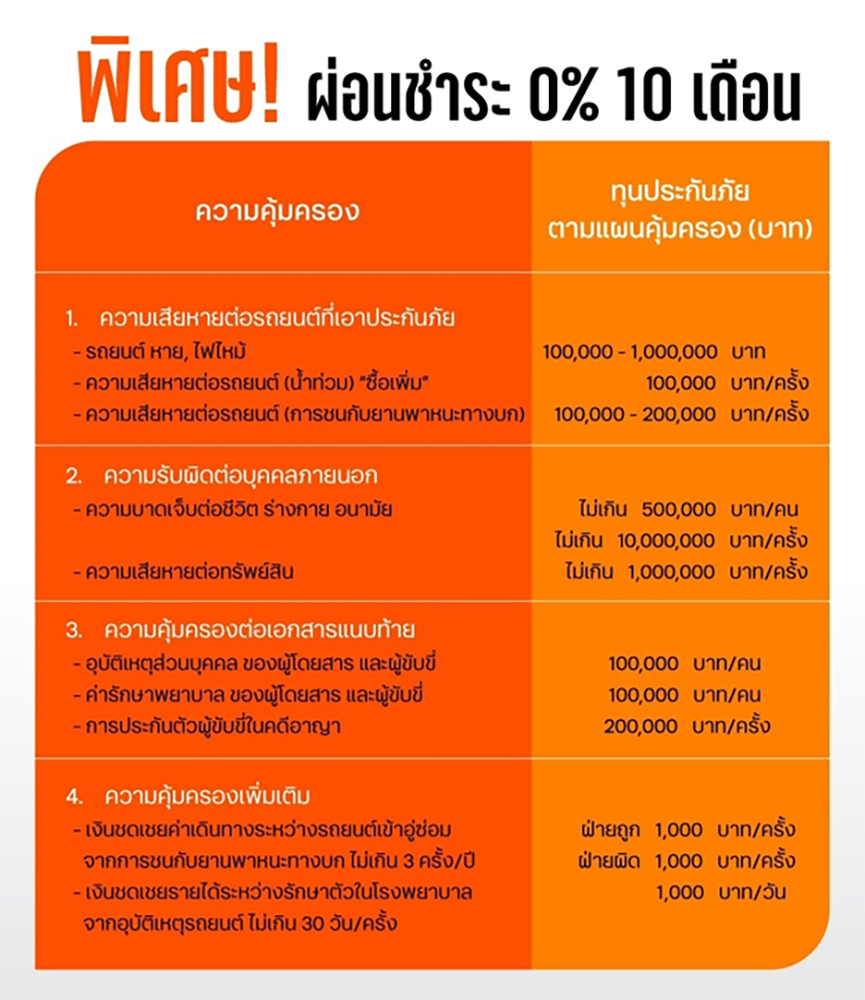 ส่วนความคุ้มครองหลักเมื่อซื้อ "ประกันภัยรถยนต์ธนชาต 2+ จัดเต็ม" สิ่งที่ได้กับเบี้ยประกันที่จ่ายไป รับรองได้ว่าเพื่อนๆ เห็นแล้วต้องร้อง "WoW" แน่นอนค่ะ พร้อมกันนั้นธนชาตประกันภัยก็จัดความพิเศษด้วยการให้ผ่อนชำระ 0% นาน 10 เดือนด้วย ความคุ้มครองที่ว่านั้นมีอะไรบ้างดูข้อมูลทั้งหมดตามนี้ได้เลยค่ะ