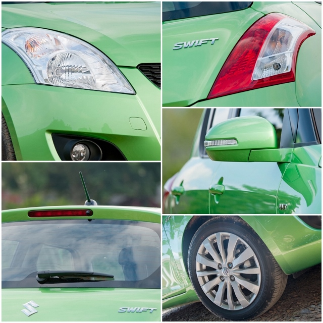 เพิ่มสีสันมีสไตล์ไปกับ Swift Limited Color รถคอมแพ็คคาร์ ที่เหมาะสมกับยุคสมัย ภายนอกเพิ่มความคล่องตัวปราดเปรียวดึงดูดความรู้สึก ดูโฉบเฉี่ยว การออกแบบด้านหน้าที่มีเอกลักษณ์เฉพาะตัวให้มีความโค้ง แบบ U-shape บ่งบอกถึงความปราดเปรียวคล่องตัว ตัวถังน้ำหนักเบา ป้องกันการสั่นสะเทือน และเสียงรบกวน กระจกรถดีไซน์อย่างกลมกลืนจากด้านหน้าไปถึงด้านข้าง ไฟหน้าแนวตั้งขนาดใหญ่แบบมัลติรีเฟลกเตอร์ และไฟท้าย เชื่อมรับกับ Shoulder Line ที่สวยงามมีบุคลิก มาพร้อมกับชุดไฟตัดหมอกคู่หน้าแบบฮาโลเจน ซุ้มล้อขนาดใหญ่ด้านหน้าและด้านหลังตอกย้ำความคล่องแคล่วปราดเปรียวล้อที่มีเส้นผ่านศูนย์กลางขนาดใหญ่ให้ความรู้สึกโดดเด่น ด้วยล้ออลูมิเนียมอัลลอยด์ขนาด 16 นิ้วดีไซน์สวยสง่างาม