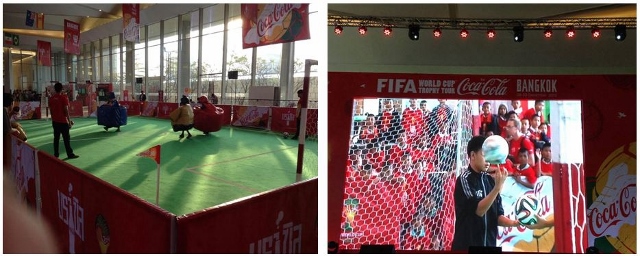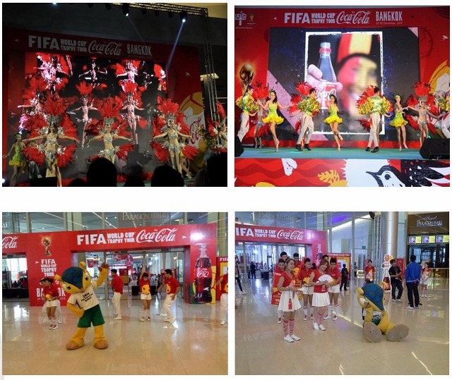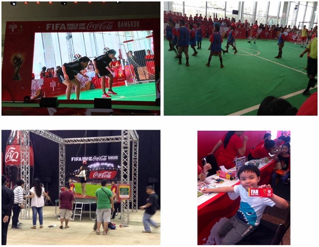 นอกจากที่ทาง KIA จะได้สนับสนุนรถยนต์ Kia Sorento, Kia Grand Carnival และ Kia K2500 รวม 6 คัน เพื่อให้ทีมงาน FIFA ใช้งานในช่วงการเฉลิมฉลองถ้วยรางวัลแล้ว KIA ยังได้นำรถยนต์ Kia Rio 5dr. เข้าโชว์บริเวณลานกิจกรรม Parc Paragon ด้วย ซึ่งได้รับความสนใจจากผู้เข้าร่วมกิจกรรมในครั้งนี้เป็นอย่างดี และกิจกรรมพิเศษสุดที่เป็นไฮไลท์อีกอย่างหนึ่ง ได้แก่ ภาพยนตร์เปิดประสบการณ์ฟุตบอลโลก ผ่านเทคนิคพิเศษฮอโลแกรมในรูปแบบ ผู้บริโภคชาวไทยและอีกทั้ง 87 ประเทศจะรับประสบการณ์การรับชม โฮโลแกรม (Hologram) ภาพเสมือนจริง 4 มิติที่จะถ่ายทอดถึงเรื่องราวต่างๆ ของ FIFA WORLD CUP ในรูปแบบที่ไม่เคยเกิดขึ้นมาก่อน ภายในงาน FIFA WORLD CUP TROPHY TOUR และยังมีกิจกรรมที่ไม่เคยจัดขึ้นมาก่อนซึ่งเป็นกิจกรรมพิเศษเพื่อมอบโอกาสและประสบการณ์แสนพิเศษแก่น้องๆ ผู้ด้อยโอกาส กว่า 200 ชีวิตจาก 5 มูลนิธิ ร่วมเล่นฟุตบอลกับทีมฟุตบอลดารา