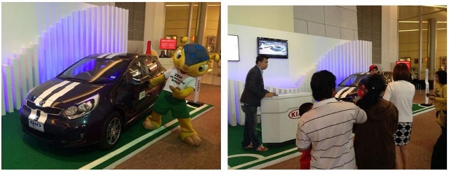 KIA ร่วมจัดกิจกรรมพิธีเปิดกิจกรรมฟุตบอลโลก ส่งท้ายปีสุดยิ่งใหญ่ เมื่อวันที่ 28 ธ.ค. 2556 ผ่านมา "FIFA WORLD CUP TROPHY TOUR 2013" บริเวณ Parc Paragon ชั้น 5 ศูนย์การค้าสยามพารากอน โดยได้นำ "FIFA WORLD CUP" มาจัดแสดงในงาน ซึ่งถ้วยดังกล่าวได้จัดแสดงโชว์ในวันที่ 29 - 30 ธ.ค. 2556 ที่ผ่านมา ได้เสร็จสิ้นไปอย่างน่าภาคภูมิใจ