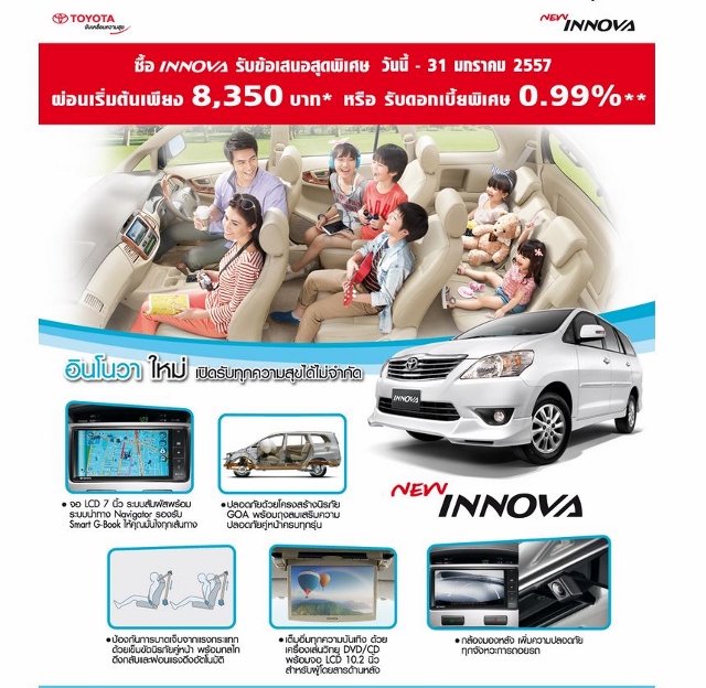 Toyota Innova พิเศษ ผ่อนเริ่มต้นเพียง 8,350 บาทต่อเดือน* หรือเลือกรับดอกเบี้ย 0.99%
