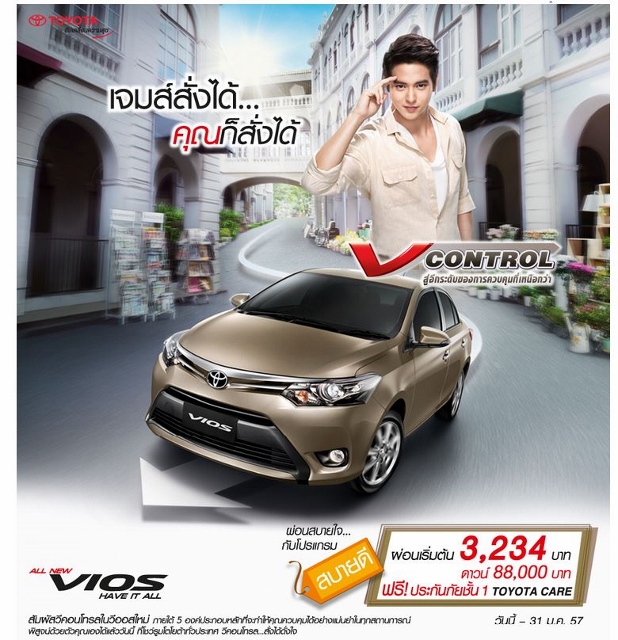Toyota Vios ผ่อนเริ่มต้น 3,234 บาทต่อเดือน กับโปรแกรม Sabuy-D ดาวน์ 88,000 บาท ทุกรุ่น