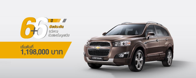 Chevrolet Captiva - เชฟโรเลต แคปติวา ราคาเริ่มต้นที่ 1,198,000 บาท พร้อมข้อเสนอพิเศษ โปรแกรม 6+6 ให้การรับประกันคุณภาพรถยนต์และบริการช่วยเหลือฉุกเฉินนาน 6 ปี และฟรีค่าแรงสำหรับการบำรุงรักษาตลอด 6 ปี