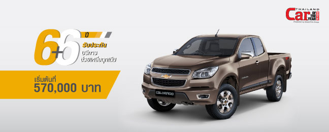 Chevrolet Colorado - เชฟโรเลต โคโลราโด ราคาเริ่มต้น 570,000 บาท พร้อมข้อเสนอพิเศษ โปรแกรม 6+6 ให้การรับประกันคุณภาพรถยนต์ และบริการช่วยเหลือฉุกเฉินนาน 6 ปี และฟรีค่าแรงสำหรับการบำรุงรักษาตลอด 6 ปี