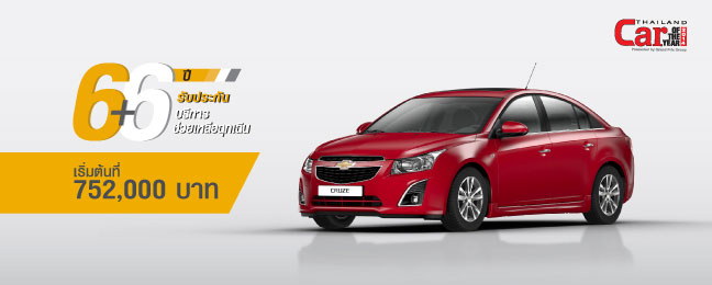 Chevrolet Cruze - เชฟโรเลต ครูซ ราคาเริ่มต้น 752,000 บาท พร้อมข้อเสนอพิเศษ โปรแกรม 6+6 ให้การรับประกันคุณภาพรถยนต์และบริการช่วยเหลือฉุกเฉินนาน 6 ปี และฟรีค่าแรงสำหรับการบำรุงรักษาตลอด 6 ปี