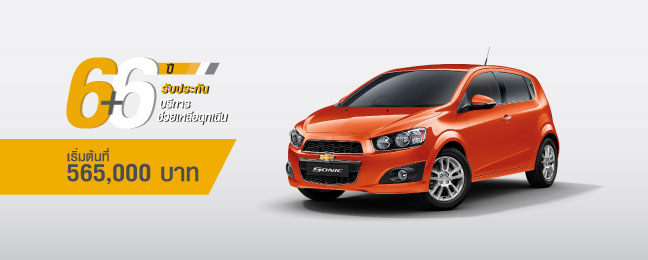 Chevrolet Sonic - เชฟโรเลต โซนิค ราคาเริ่มต้น 565,000 บาท พร้อมข้อเสนอพิเศษ โปรแกรม 6+6 ให้การรับประกันคุณภาพรถยนต์และบริการช่วยเหลือฉุกเฉินนาน 6 ปี และฟรีค่าแรงสำหรับการบำรุงรักษาตลอด 6 ปี