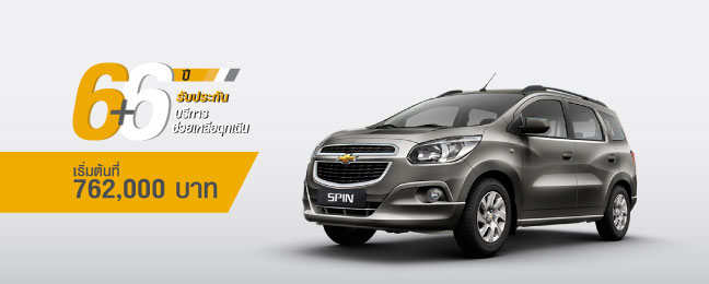 Chevrolet Spin - เชฟโรเลต สปิน ราคาเริ่มต้น 762,000 บาท พร้อมข้อเสนอพิเศษ โปรแกรม 6+6 ให้การรับประกันคุณภาพรถยนต์และบริการช่วยเหลือฉุกเฉินนาน 6 ปี และฟรีค่าแรงสำหรับการบำรุงรักษาตลอด 6 ปี