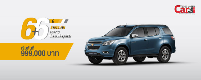 Chevrolet Trailblazer - เชฟโรเลต เทรลเบลเซอร์ ราคาเริ่มต้นที่ 999,000 บาท พร้อมข้อเสนอพิเศษ โปรแกรม 6+6 ให้การรับประกันคุณภาพรถยนต์และบริการช่วยเหลือฉุกเฉินนาน 6 ปี และฟรีค่าแรงสำหรับการบำรุงรักษาตลอด 6 ปี