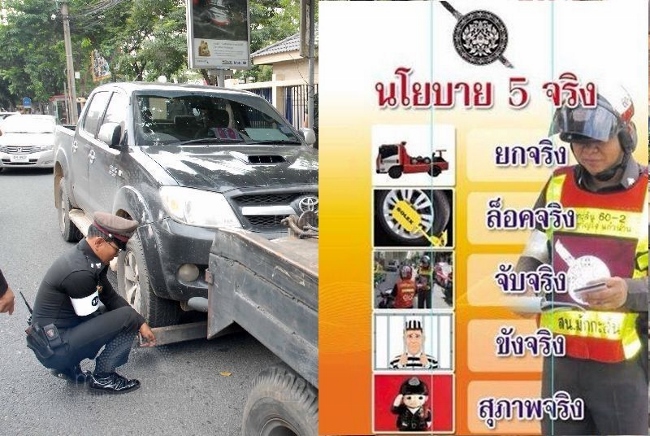 ใครรู้ตัวว่าเคยหรือกระทำความผิดในวินัยจราจรต่างๆ เช่น จอดรถในที่ห้ามจอด หยุดรับส่งในเขตรถติดๆ หรือการตั้งวางสิ่งของขายบนทางเท้าต่างๆ นั้น บัดนี้ทางตำรวจเอาจริงแล้วนะครับ! กับนโยบาย 5 จริงจากทางสำนักงานตำรวจแห่งชาติ ที่จะล็อคล้อ ยกเคลื่่อนย้าย ขังและปรับครบเซ็ตเลย