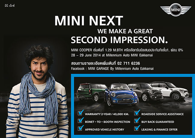 27 มิ.ย. 57 4,021มิลเลนเนียม ออโต้ มินิ จัดแคมเปญ Mini Next ราคาเริ่มที่ 1.29 ล้านบาท