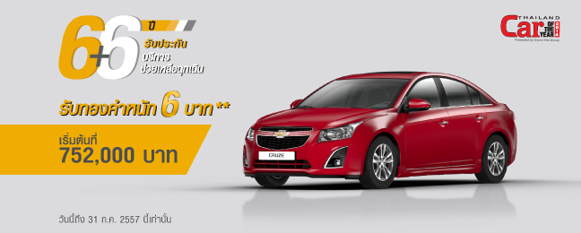 - รถยนต์เชฟโรเลต ครูซ MY13 ทุกรุ่น ฟรีโปรแกรมขยายการรับประกัน 6 ปี และทองคำหนัก 6 บาท