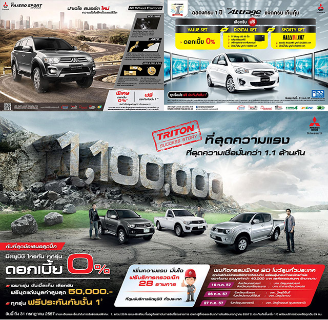 Mitsubishi - มิตซูบิชิ มอบโปรโมชั่นสุดคุ้มกับ 3 รุ่น 3 สไตล์ วันนี้ก่อน 31 ก.ค. 57 นี้