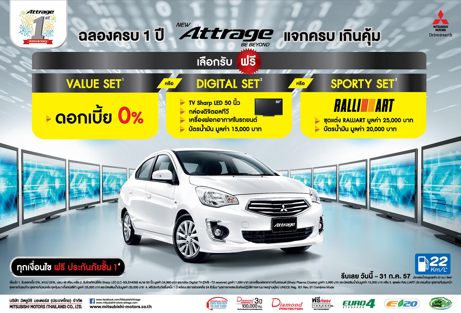 New Mitsubishi Attrage (มิตซูบิชิ แอตทราจ) ฉลองครบ 1 ปี แจกครบ เกินคุ้มเลือกรับฟรี