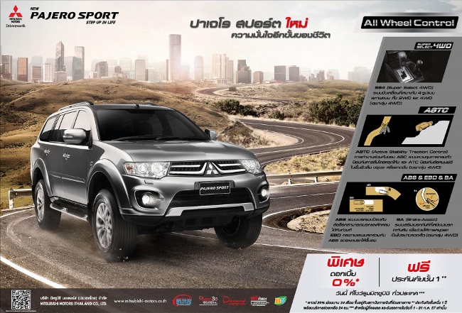 Mitsubishi Pajero - (มิตซูบิชิ ปาเจโร สปอร์ตใหม่) ความมั่นใจ อีกขั้นของชีวิต พิเศษ ดอกเบี้ย 0%* ฟรี ประกันภัยชั้น 1** วันนี้ ที่โชว์รูมมิตซูบิชิ ทั่วประเทศ*** หมายเหตุ:
