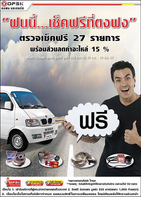 DFSK Motors กระหน่ำ 2 โปรแรงรับหน้าฝน ตรวจเช็คฟรี 27 รายการ และดาวน์ต่ำเพียง 20,000 บาท