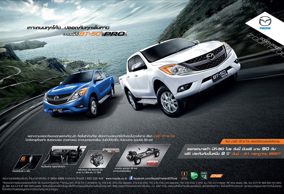 มาสด้า บีที-50 โปร ขับฟรี 90 วัน* ฟรีประกันชั้นหนึ่งนาน 2 ปี และ