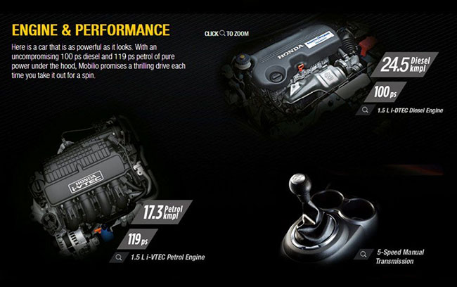 ในส่วนของเครื่องยนต์นั้น คาดว่าทางฮอนด้า ประเทศไทย อาจจะใช้เครื่องยนต์ขนาด 1.5 ลิตร 4 สูบ SOHC 16 วาล์ว i-VTEC 119 แรงม้า อัตราสิ้นเปลืองเชื้อเพลิงอยู่ที่ 17.3 กม./ลิตร โดยในเวอร์ชั่นอินเดีย ทาง Honda ยังมีเครื่องยนต์ดีเซลขนาด 1.5 ลิตร 4 สูบ DOHC 16 วาล์ว i-DTEC 100 แรงม้า พร้อมเทคโนโลยี Earthdreams ให้เลือกอีกด้วย แต่ในบ้านเราเครื่องดีเซล Honda อาจจะไม่มีให้เลือกเหมือนเคย