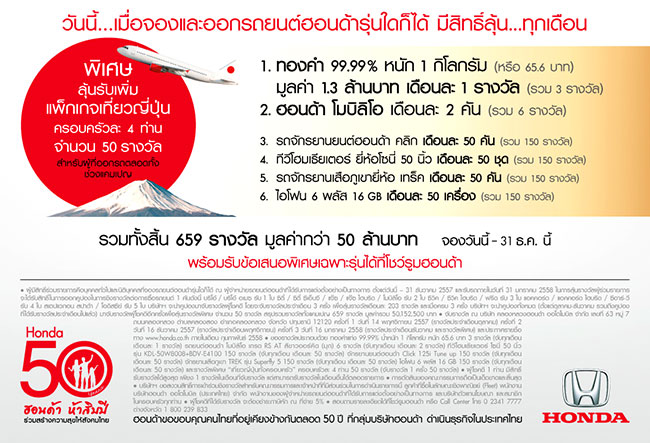 Honda ขอขอบคุณลูกค้าชาวไทยที่ให้การสนับสนุนมาตลอด 50 ปี