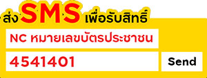 ส่ง SMS เพื่อรับสิทธิ์ : พิมพ์ NC (เว้นวรรค) ตามด้วยหมายเลขบัตรประชาชน ส่งมาที่ 4541401 (ค่า SMS ครั้งละ 3 บาท) จากนั้นรอรหัสจาก SMS ตอบกลับ* เพื่อรับสิทธิ์รับบัตรน้ำมัน 1,500 บาท และบัตรกำนัล KFC 200 บาท (สำหรับผู้ที่ส่ง SMS 200 ท่านแรก) หมดเขตส่ง SMS ลงทะเบียนรับสิทธิพิเศษวันที่ 10 ธันวาคม 2557