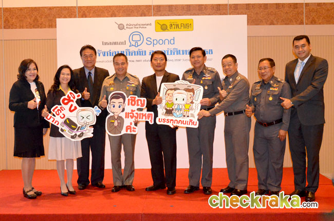 ดร.ไจตนย์ ศรีวังพล รองกรรมการผู้จัดการ บริษัท วิไลเซ็นเตอร์แอนด์ซันส์ จำกัด ผู้แทน สวพ.FM 91 สถานีวิทยุในสังกัดกองตำรวจสื่อสาร สำนักงานตำรวจแห่งชาติ เปิดเผยว่า จากสถิติการรับแจ้งเหตุในช่วงเทศกาลสำคัญ โดยเฉพาะช่วงเทศกาลปีใหม่ที่มีจำนวนมากและมีปริมาณเพิ่มมากขึ้นทุกปี แม้จะมีการณรงค์ให้ขับขี่อย่างปลอดภัยจากหน่วยงานที่เกี่ยวข้องหลากหลายช่องทางและรูปแบบ สวพ.FM91 จึงได้ร่วมกับสำนักงานตำรวจแห่งชาติ นำเทคโนโลยีที่ประชนชนสามารถมีส่วนร่วมในการแจ้งเหตุ และเป็นหูเป็นตาร่วมกับเจ้าหน้าที่ตำรวจมาใช้โดยที่ประชาชนที่เป็นพลเมืองดีสามารถแจ้งเตือนภัย ก่อนที่จะเกิดเหตุได้ทุกที่ทุกเวลาตลอดการเดินทาง และมีความปลอดภัยสูง ด้วยการโหลดใช้แอปพลิเคชั่น Spond ซึ่งเมื่อประชาชนพบเหตุน่าสงสัยสามารถเปิดแอพพลิเคชั่น Spond ในมือถือ และเลือกประเภทของพาหนะที่ต้องการแจ้งเหตุ เช่น รถตู้ รถเมล์ รถแท็กซี่หรือรถทัวร์ ฯลฯ ด้วยการเลือกส่งสติกเกอร์ ตามเหตุการณ์ที่กำลังประสบอยู่ อาทิ ขับรถเร็วเกินกำหนด คนขับเมาสุรา ฯลฯ ซึ่งผู้ส่งสามารถส่งตำแหน่ง และสถานที่พบเหตุหรือพิมพ์ข้อมูลอื่นๆ เพิ่มเติมส่งมายังเจ้าหน้าที่ สวพ.FM91 ได้ โดยหลังจากที่มีการแจ้งเหตุ ทีมงาน สวพ.FM91 จะแจ้งการรับข้อมูลผ่านสติกเกอร์ "หมวดตุ้ม" เช่น ยินดีให้บริการค่ะ ฯลฯ หรือข้อความอื่นๆ จากนั้นจะดำเนินการประสานไปยังเจ้าหน้าที่ตำรวจให้ดำเนินการระงับเหตุหรือดำเนินการตามกฎหมายต่อไป สำหรับประชาชนที่สนใจร่วมเป็นส่วนหนึ่งของการแจ้งก่อนเกิดภัย ลดอุบัติเหตุ 2558 สามารถดาวน์โหลดแอปพลิเคชั่น Spond ได้ฟรีที่ Google Play และ App Store ตั้งแต่วันที่ 26 ธันวาคม 2557 เป็นต้นไป