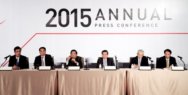 มร.เคียวอิจิ ทานาดะ กรรมการผู้จัดการใหญ่ บริษัท โตโยต้า มอเตอร์ ประเทศไทย จำกัด แถลงสถิติการจำหน่ายรถยนต์ปี 2557 พร้อมคาดการณ์ตลาดรถยนต์ไทยปี 2558 เมื่อวันที่ 21 มกราคม 2558 ณ ห้องบอลรูม โรงแรมโอกุระ กรุงเทพฯ