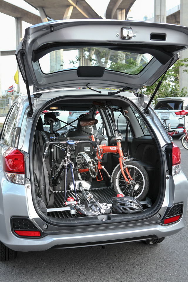 ฮอนด้า โมบิลิโอ ขับเคลื่อนด้วยผู้โดยสารได้มากสุดถึง 8 คน พร้อมพื้นที่เก็บสัมภาระด้านหลัง โดยทริปนี้ได้นำจักรยาน 2 คัน พร้อมผู้โดยสารรวมผู้ขับ 2 คน ออกจากจุดเริ่มเต้นบริเวณนอร์ธปาร์ค ถนนวิภาวดี มุ่งหน้าสู่สวนลัดโพธิ์ พระประแดง ด้วยสมรรถนะเครื่องยนต์ SOHC i-VTEC 4 สูบ 16 วาล์ว ขนาด 1.5 ลิตร ให้กำลังสูงสุด 120 แรงม้าที่ 6,600 รอบต่อนาที แรงบิดสูงสุด 145 นิวตัน-เมตรที่ 4,600 รอบต่อนาที โดยมีทั้งเกียร์ธรรมดา 5 สปีด (รุ่น S) และเกียร์ CVT ใหม่ (รุ่น V และ RS) พัฒนาภายใต้เทคโนโลยี Earth Dreams ให้อัตราเร่งและประหยัดน้ำมันดีเยี่ยม พร้อมตอบรับทุกไลฟ์สไตล์ เช่น กิจกรรมการปั่นจักรยานที่กำลังได้รับความนิยมในกลุ่มคนรุ่นใหม่ใส่ใจในสุขภาพ