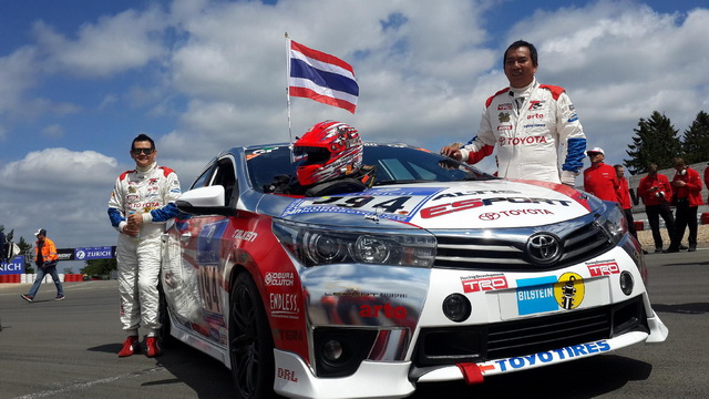ปี 2557 บริษัท โตโยต้า มอเตอร์ ประเทศไทย จำกัด ผู้สนันสนุนหลักอย่างเป็นทางการของ โตโยต้า ทีม ไทยแลนด์ โดยมี 4 นักขับสุดยอดฝีมือ ได้ไปสร้างประวัติศาสตร์หน้าใหม่ให้กับวงการรถยนต์ของประเทศไทย ด้วย โตโยต้า โคโรลล่า อัลติส เอสสปอร์ต ซึ่งเป็นรถยนต์ Production Car คันแรก ผลิตจากสายการผลิตในประเทศไทยเหมือนรถที่จำหน่ายอยู่ในโชว์รูม โดยสามารถพิชิตสนามนูร์เบอร์กริง ด้วยจำนวน 99 รอบสนาม หรือกว่า 2,500 กิโลเมตร ในเวลา 24 ชั่วโมง พร้อมคว้าอันดับ 7 ในรุ่น Super Production 3 จากรถทั้งหมด 32 คัน