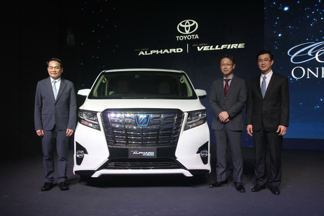 นายวิเชียร เอมประเสริฐสุข รองกรรมการผู้จัดการใหญ่ บริษัท โตโยต้า มอเตอร์ ประเทศไทย จำกัด นายเคนอิจิ โยชิโอกะ หัวหน้าวิศวกร บริษัท โตโยต้า มอเตอร์ คอร์ปอเรชั่น ประเทศญี่ปุ่น และนายวุฒิกร สุริยะฉันทนานนท์ ผู้ช่วยกรรมการผู้จัดการใหญ่อาวุโส บริษัท โตโยต้า มอเตอร์ ประเทศไทย จำกัด ร่วมแนะนำที่สุดแห่งเกียรติยศยนตกรรม โตโยต้า อัลฟาร์ด 3.5 อัลฟาร์ด ไฮบริด 2.5 และเวลไฟร์ 2.5 ใหม่ ในวันที่ 23 มีนาคม 2558 ณ โรงแรม ดิโอกุระเพรสทีจ กรุงเทพ