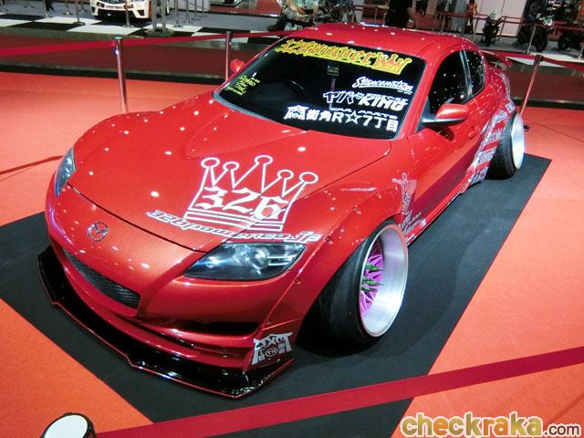 Mazda RX-8 สำนักแต่ง MICHIKADO-R เชี่ยวชาญการเซ็ตระบบช่วงล่าง เช่น ทำคอม้าเพิ่มมุมล้อให้มากกว่าเดิม โดยคุณฮายาชิ เจ้าของสำนัก เป็นผู้บุกเบิกการปรับแต่งสไตล์โหลดเตี้ยสุดๆ แต่รถสามารถวิ่งได้จริง! เครื่องยนต์+ช่วงล่าง+ชุดแต่งจากสำนัก RED POWER