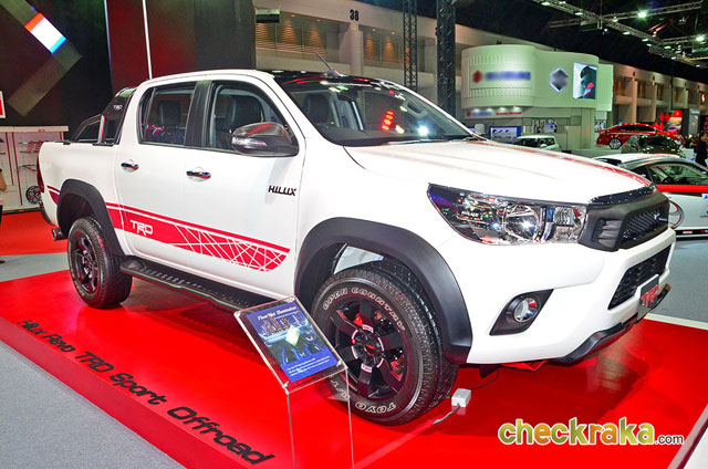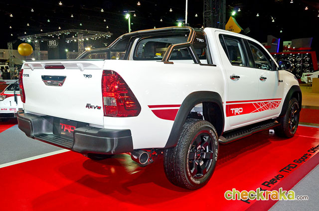 โตโยต้ายังได้นำเจ้า รีโว่ รุ่นตกแต่งพิเศษ ทีอาร์ดี (TRD) ในสไตล์ออฟโร้ดออกมาโชว์ความสวยดุขั้นเทพให้บรรดาสาวกกระบะได้หวั่นไหว ภายในงานบางกอกอินเตอร์เนชั่นแนล ออโต ซาลอน 2015 ที่ผ่านมา ณ เมืองทองธานี มาดูสิว่าโตโยต้า รีโว่ ทีอาร์ดี มีอะไรโดนๆ บ้าง เริ่มด้วยกระจังหน้าแบบสปอร์ตลายรังผึ้งสีดำด้านพร้อมโลโก้ "TRD" และติดตั้งแผ่นกันกระแทกใต้ห้องเครื่องสีดำที่ด้านล่างของกันชนหน้า เพิ่มความดุได้ไม่น้อย