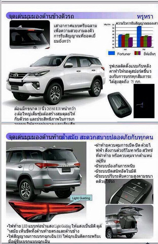 ภาพคล้ายฟอร์จูนเนอร์จอดโชว์ในโชว์รูม เปิดให้ลูกค้าได้ชมและจองก่อนงานเปิดตัว แม้เป็นเอสยูวี ที่เน้นการขับลุยได้หลากหลายเส้นทาง แต่การออกแบบภายนอกของ ฟอร์จูนเนอร์ ใหม่ กลับมีความหรูหราจนคล้ายคลึงกับแบรนด์เลกซัส หรือโตโยต้า แฮริเออร์