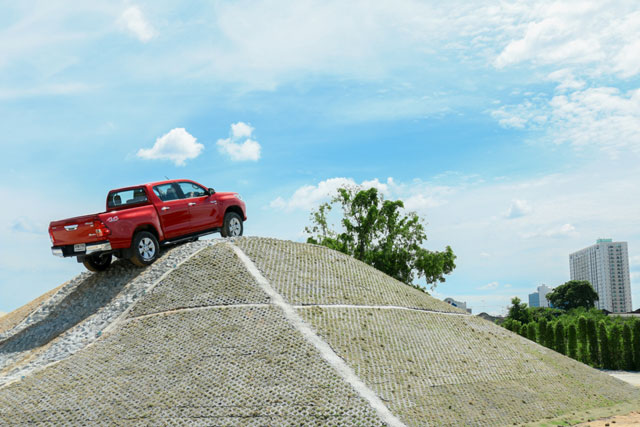 สถานีที่ 1 : Slope Hill เนินภูเขาลาดชัน ใช้สำหรับการทดสอบการขึ้นลงทางลาดชัน โดยใช้ระบบช่วยออกตัวบนทางลาดชัน HAC (Hill-Start Assist Control) และระบบควบคุมความเร็วขณะลงทางลาดชัน DAC (Downhill Assist Control)