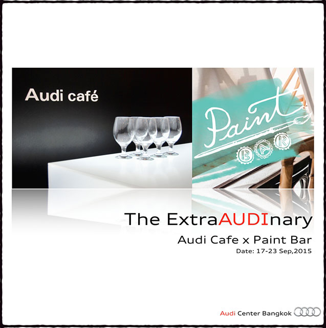 พิเศษสุดๆ เพียงแค่คุณถ่ายรูปเครื่องดื่มหรือขนมชนิดใดก็ได้จาก Audi Cafe' ภายในงาน แล้วแชร์ลง Facebook หรือ Instagram พร้อมติด hashtag #AudiThailand ก็สามารถลุ้นรับสิทธ์เข้าร่วมกิจกรรมวาดรูประหว่าง Audi Thailand กับ Paintbar Bangkok ได้ฟรี! ในวันเสาร์ที่ 19 กันยายน 2558 ตั้งแต่เวลา 13.30 น. เป็นต้นไป