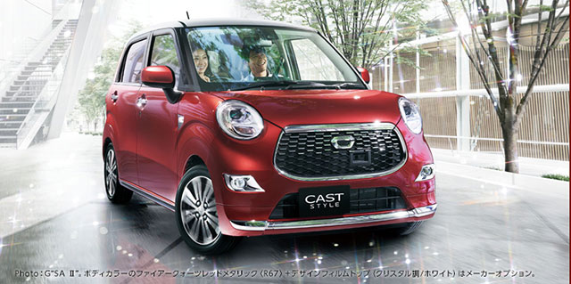 Daihatsu Cast ใหม่ ได้เปิดตัวไปแล้วในญี่ปุ่นเมื่อวันที่ 9 กันยายน 2015 ที่ผ่านมา เป็นรถ K-Car ที่มีเครื่องยนต์ขนาด 660 ซีซี มีให้เลือก 3 สไตล์ นั่นคือรุ่น Activa แบบยกสูงเน้นลุยๆ รุ่น Sport สไตล์สปอร์ตโฉบเฉี่ยว และรุ่น Style มาพร้อมชุดแต่งรอบคัน พร้อมรุ่นย่อยต่างๆ อาทิ G SA II, G Turbo SA II, X และ X SA II การออกแบบตัวรถ ได้รับแรงบันดาลใจจาก Mini และ Smart ForFour ที่สำคัญ Daihatsu ตั้งใจออกรุ่นนี้มาเพื่อชนกับคู่แข่งสำคัญอย่าง Suzuki Hustler