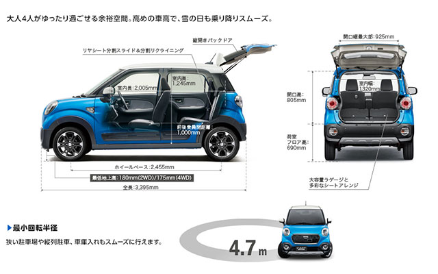 - Daihatsu Cast Activa X 2WD มีราคาจำหน่ายที่ 1,220,400 เยน และรุ่นที่แพงสุดอย่าง G Turbo SA II 4WD ราคา 1,647,000 เยน