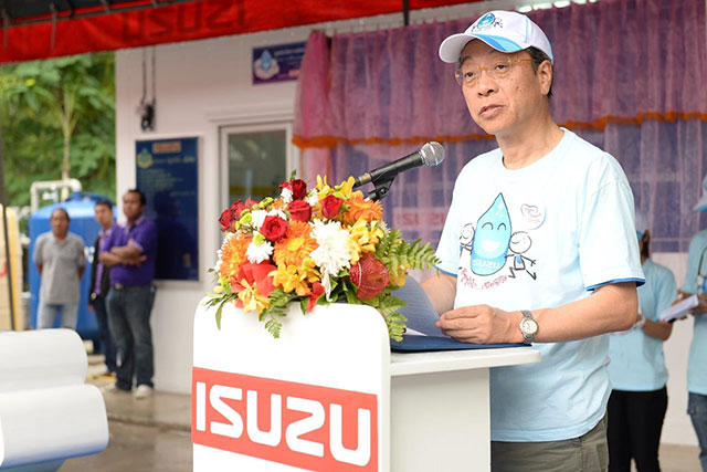 โครงการ "อีซูซุให้น้ำ...เพื่อชีวิต" กลุ่มอีซูซุได้ดำเนินการอย่างต่อเนื่องเป็นปีที่ 3 เริ่มตั้งแต่ส่งทีมสนับสนุนลงพื้นที่ร่วมกับเจ้าหน้าที่ระดับปฏิบัติการของกรมทรัพยากรน้ำบาดาลเพื่อดำเนินการสำรวจ และวางแผนแก้ไขปัญหาที่เกิดขึ้น โดยติดตั้งชุดอุปกรณ์ขุดเจาะน้ำบาดาลครบวงจร รวมถึงระบบกรองน้ำดื่มสะอาดตามมาตรฐาน ตลอดจนดำเนินการปรับปรุงสภาพภูมิทัศน์โดยรอบให้ถูกสุขลักษณะ รวมถึงอบรมการดูแลรักษา และสร้างมูลค่าเพิ่มด้วยการบรรจุน้ำดื่มใส่ขวดเพื่อจำหน่ายราคาพิเศษแก่คนในชุมชนในรูปแบบสหกรณ์ และนำรายได้ที่งอกเงยกลับมาเป็นค่าบำรุงรักษา พร้อมกันนี้กลุ่มอีซูซุยังมอบทุนสำหรับการพัฒนาโรงเรียนเป็นจำนวนเงิน 50,000 บาท อีกด้วย