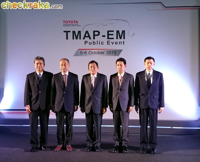 มร.เคียวอิจิ ทานาดะ เจ้าหน้าที่บริหาร บริษัท โตโยต้า มอเตอร์ คอร์ปอเรชั่น / กรรมการผู้จัดการใหญ่ บริษัท โตโยต้า มอเตอร์ เอเชีย แปซิฟิค มาร์เก็ตติ้ง แอนด์เซลส์ / กรรมการผู้จัดการใหญ่ บริษัท โตโยต้า มอเตอร์ เอเชีย แปซิฟิค เอ็นจิเนียริ่ง แอนด์ แมนูแฟคเจอริ่ง / กรรมการผู้จัดการใหญ่ บริษัท โตโยต้า มอเตอร์ ประเทศไทย จำกัด พร้อมด้วย มร. โซอิชิโระ โอคุไดระ เจ้าหน้าที่บริหารอาวุโส บริษัท โตโยต้า มอเตอร์ คอร์ปอเรชั่น / ประธานบริหารด้านเทคนิค ประจำภูมิภาคเอเชีย โอเชียเนีย และจีน และนายสุรพงษ์ ตินนังวัฒนะ รองกรรมการผู้จัดการใหญ่ บริษัท โตโยต้า มอเตอร์ เอเชีย แปซิฟิค เอ็นจิเนียริ่ง แอนด์ แมนูแฟคเจอริ่ง ร่วมเปิดงานเยี่ยมชม บริษัท โตโยต้า มอเตอร์ เอเชีย แปซิฟิค เอ็นจิเนียริ่ง แอนด์ แมนูแฟคเจอริ่ง เป็นครั้งแรกแก่สื่อมวลชน เมื่อวันที่ 5 ตุลาคม 2558 ณ สำนักงานใหญ่ อำเภอบางบ่อ จังหวัดสมุทรปราการ