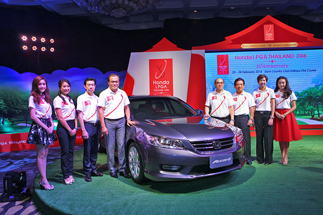บริษัท ฮอนด้า ออโตโมบิล (ประเทศไทย) จำกัด ร่วมกับ สถานีโทรทัศน์สีกองทัพบกช่อง 7 ประกาศจัดการแข่งขันกอล์ฟสตรี ฮอนด้า แอลพีจีเอ ไทยแลนด์ 2016 เพิ่มเงินรางวัลรวมเป็น 1.6 ล้านเหรียญดอลลาร์สหรัฐ หรือประมาณ 59 ล้านบาท ฉลองวาระครบรอบ 10 ปี การแข่งขันกอล์ฟสตรีฮอนด้า แอลพีจีเอ ไทยแลนด์ ในปีนี้ โดยจัดการแข่งขันขึ้นในระหว่างวันที่ 25-28 กุมภาพันธ์ 2559 ณ สยามคันทรีคลับ พัทยา โอลด์คอร์ส พร้อมถ้วยรางวัลที่ได้รับการออกแบบขึ้นมาใหม่ และรางวัลพิเศษสำหรับโฮลอินวัน ที่หลุม 16 รถยนต์ฮอนด้า แอคคอร์ด
