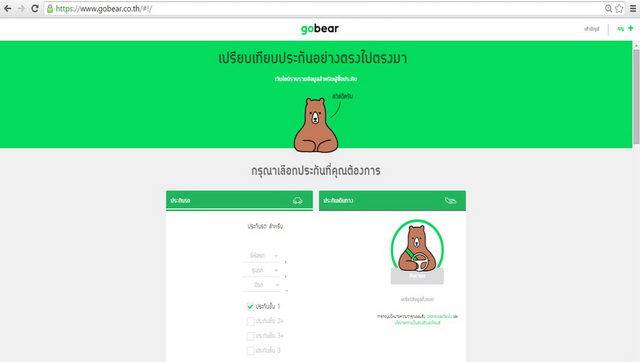 www.GoBear.co.th คือ เว็บไซต์ที่รวบรวมข้อมูลผลิตภัณฑ์ทางการเงินโดยเริ่มจากข้อมูล เปรียบเทียบประกันภัย และท่องเที่ยว เพื่อหาข้อเสนอดีที่สุดให้กับผู้ใช้ ไม่ได้ขายประกันภัยโดยตรง แต่ผู้ใช้จะส่งต่อไปเว็บไซต์ของบริษัทหรือตัวแทนประกันภัยอัตโนมัติ เพื่อซื้อประกันภัยเองโดยตรง
